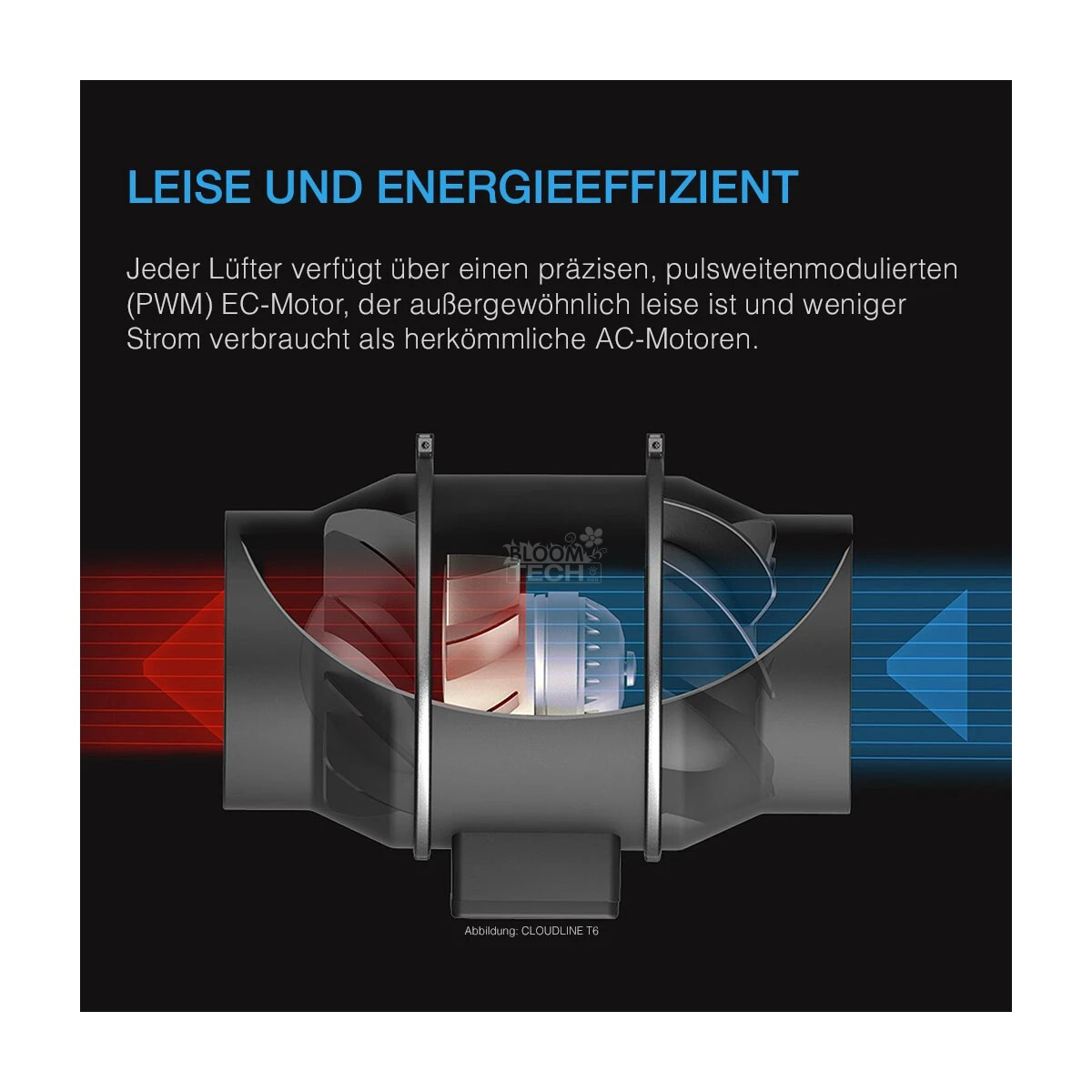 Der EC-Motor mit PWM-Steuerung sorgt für einen geräuscharmen und energieeffizienten Betrieb mit minimaler Abwärme und Geräuschentwicklung.