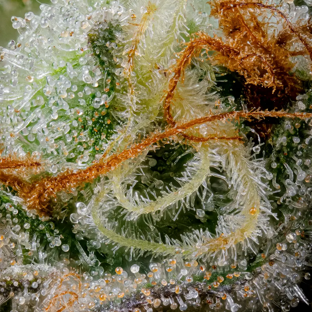 Die Knospen sind dicht und hart, und die Präsentation ist nach dem Aushärten ein wahrer Augenschmaus. Unter einer glänzenden Trichom-Schicht verbirgt sich eine faszinierende Vielfalt aus Violett, Rosa, Weiß und Grüntönen.